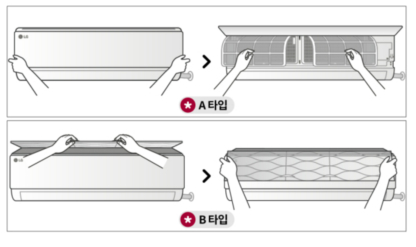 - 에어컨 커버를 열고 내부를 확인합니다.
